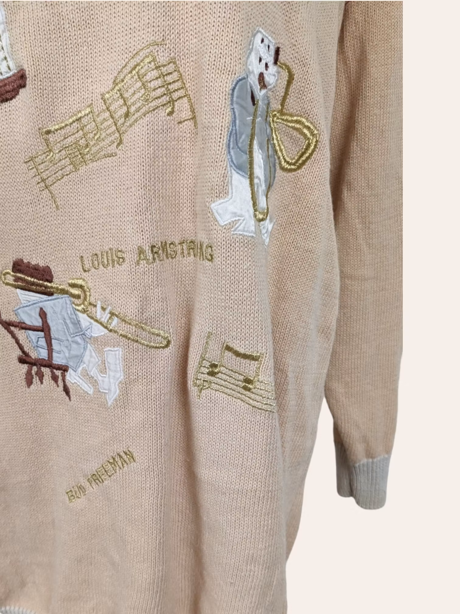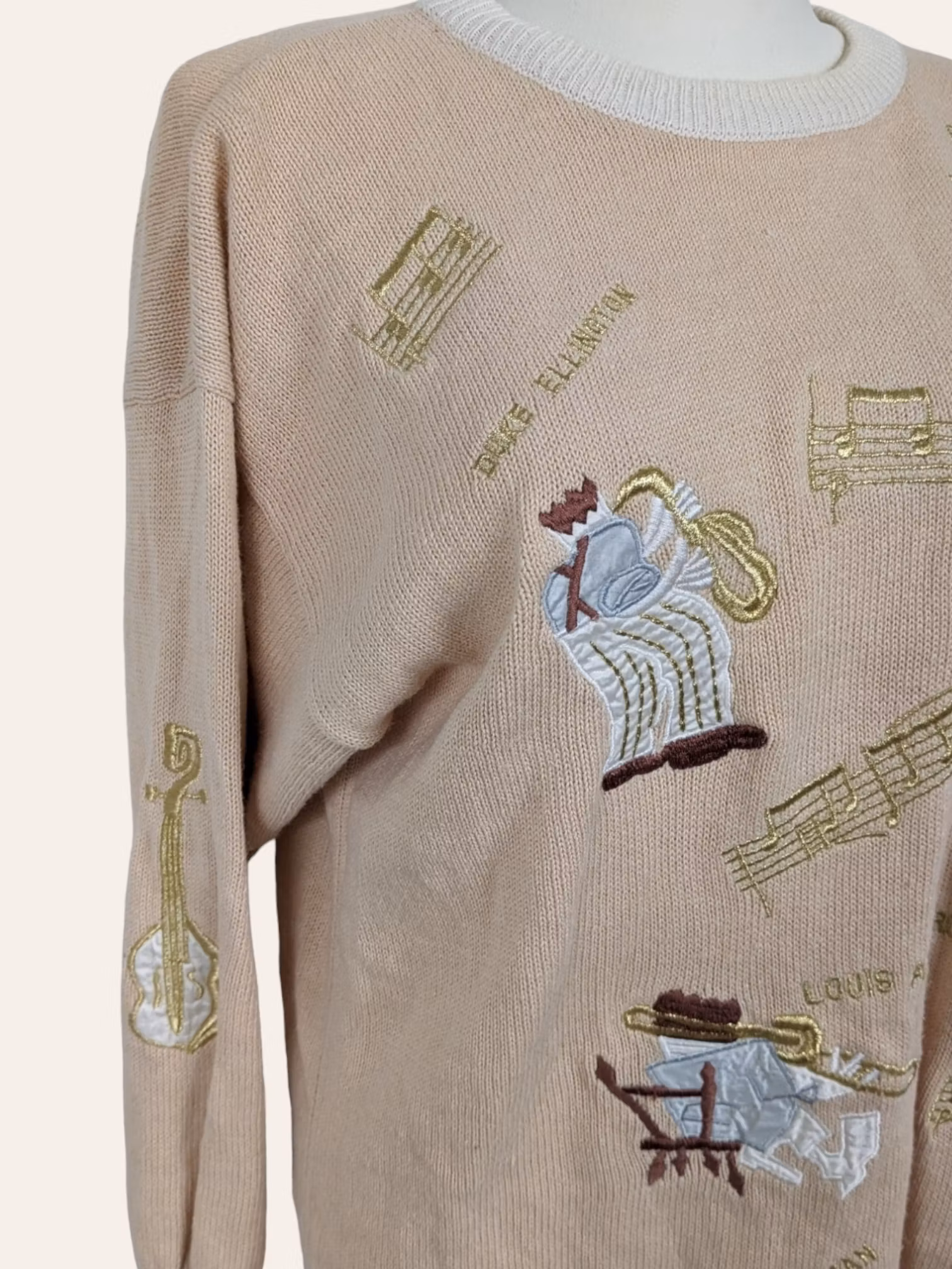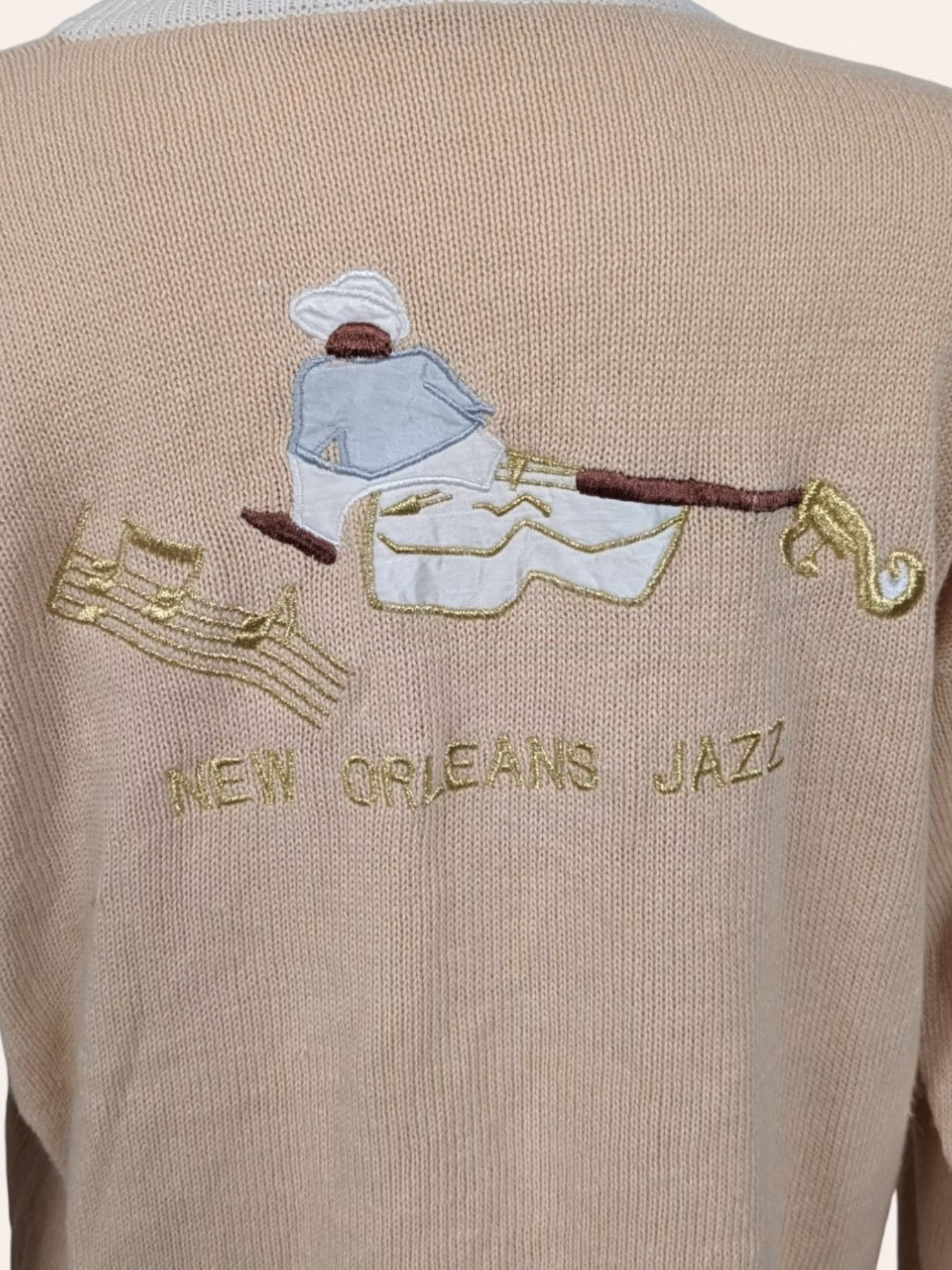 VINTAGE JAZZET STRIK STR.40 149,- Vintage strik med jazz relateret broderinger str.40 - Brystmål 104 - Længde 75 - Materiale ukendt - Grade A - På lager Tilføj til indkøbskurven Del Lagersaldo: 1 Varenummer: STD122 Information Vintage strik med jazz relateret broderinger str.40 - Brystmål 104 - Længde 75 - Materiale ukendt - Grade A -